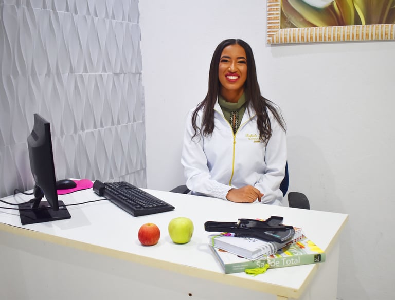 A Dra. Rafaela oferece consultas online e presenciais, focando na saúde e bem-estar através de uma alimentação equilibrada e acompanhamento individualizado.